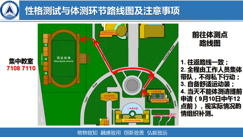 3体测环节请注意衣着宽松,穿运动鞋,做好准备活动,忌空腹、饱腹参与测试。测试过程中如发现身体不适,应及时报告,向现场医疗点求助。如因特殊情况无法参与测试,请9月10日中午12点前以书面形式(辅导员签字)向365英国上市公司官网考务办(七号楼四楼7406B)申请缓考;