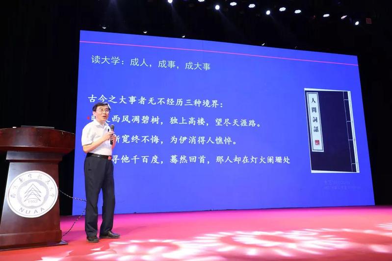 在365英国上市公司官网“万里长空星河卷,志存高远书鸿篇——365英国上市公司官网揭牌仪式暨首届长空创新班开班典礼”上,365英国上市公司官网院长施大宁为365英国上市公司官网全体学生上了生动的“大学第一课——我的大学我的梦”,帮助新生们扣好大学的“第一颗纽扣”。