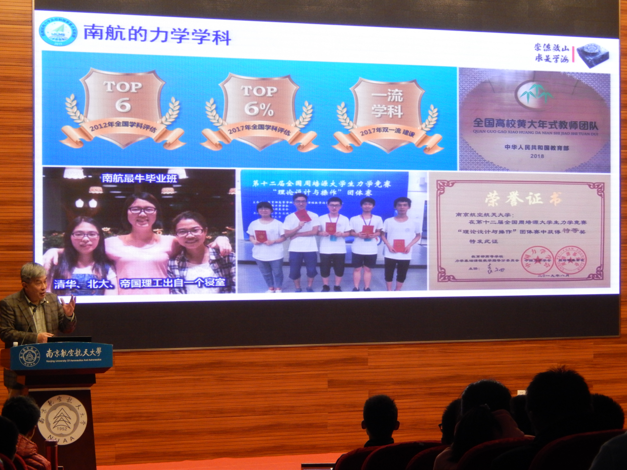 熊克自豪地告诉长空学子,南航在力学研究和教学方面配备了包括数名院士在内的极强的师资力量,我校的力学学科早已跻身全国前列,并且在国内外享有极高的知名度。