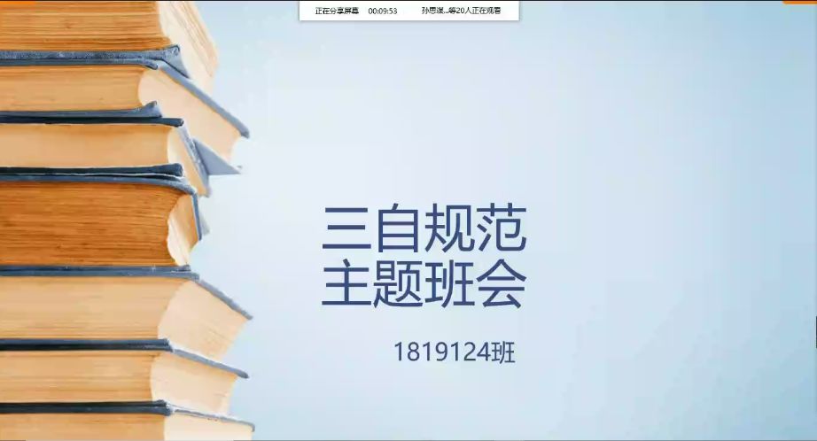 124班班委成员分别向同学们分享了近期的线上学习心得,推荐了一些不同类别的书籍并建议同学们做好读书笔记。同时,班委成员倡导班级内部加强线上学习交流,以帮助同学们尽快适应线上学习环境。