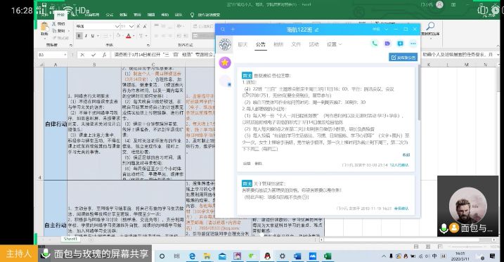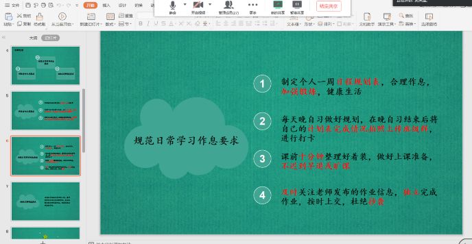 115班班长首先通过ppt的形式风趣地总结了线上学习的笑与泪,然后回归严肃,讲述‘三自’行动的重要性,并鼓励大家向班级内的榜样学习,养成良好的学习生活习惯。