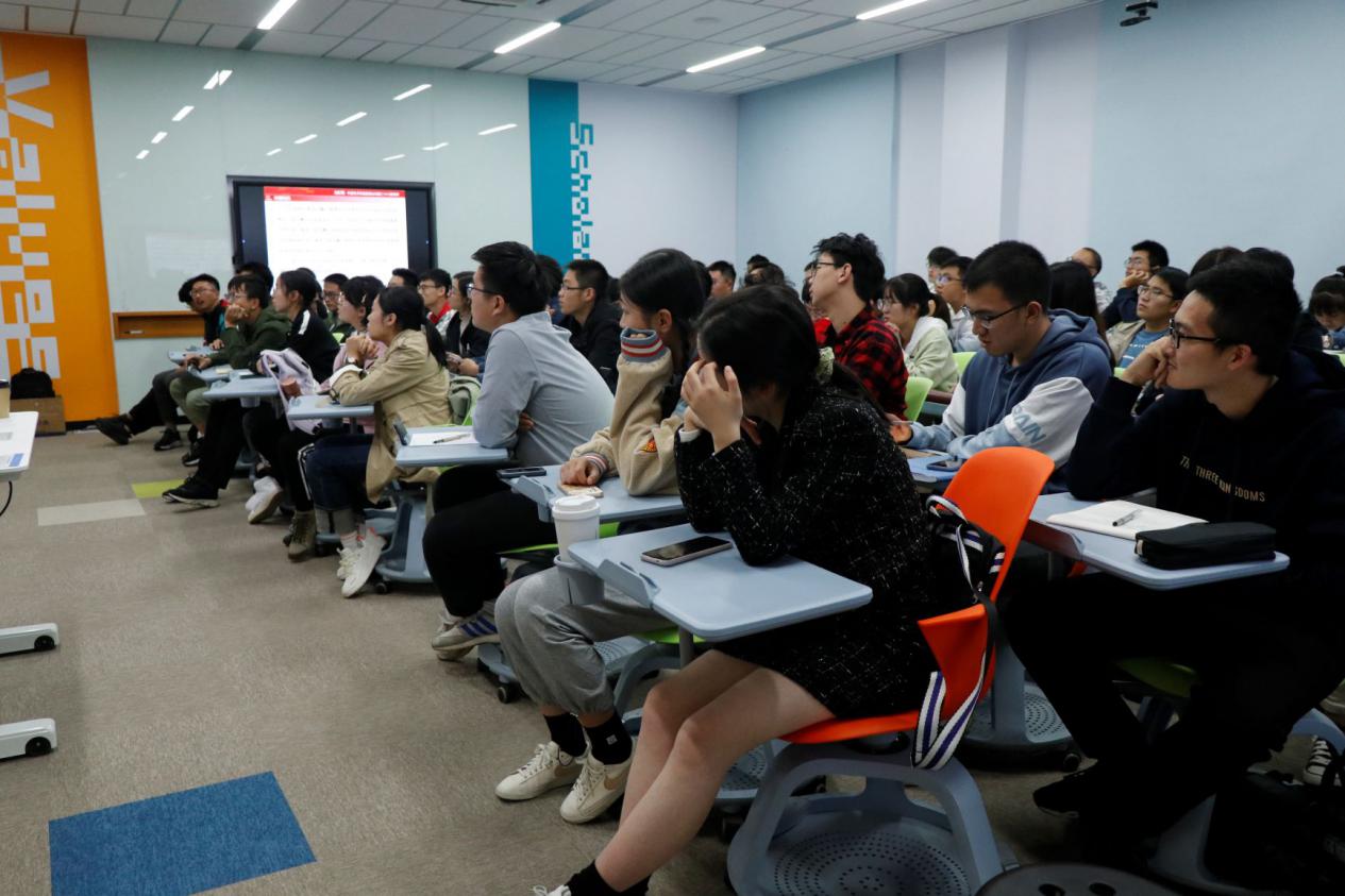 于辉首先对军工的概念以及国内军工行业的基本情况进行了说明,并从战略地位、涉及领域及杰出贡献三个方面介绍了中国电子科技集团公司。通过行业电子与电子行业的对比,带领学生们逐步了解代表中国的“电子行业”。之后,他从中电28所的具体情况出发,展示了28所围绕成为具有强大自主创新能力、卓越运营能力和国际竞争能力的现代企业集团,成为“国内卓越、世界一流”的信息系统整体解决方案提供商和服务商,成为指挥控制技术的引领者,发挥“国家队”作用,履行“大国重器”担当这一愿景所付出的努力。最后,于辉给长空创新班的学生们提出了几点建议:“胸怀天下,使命担当”、“夯实根基,长远发展”、“战略思维,战术落实”、“塑造自我,坚持梦想”、“培养习惯,终生进步”。