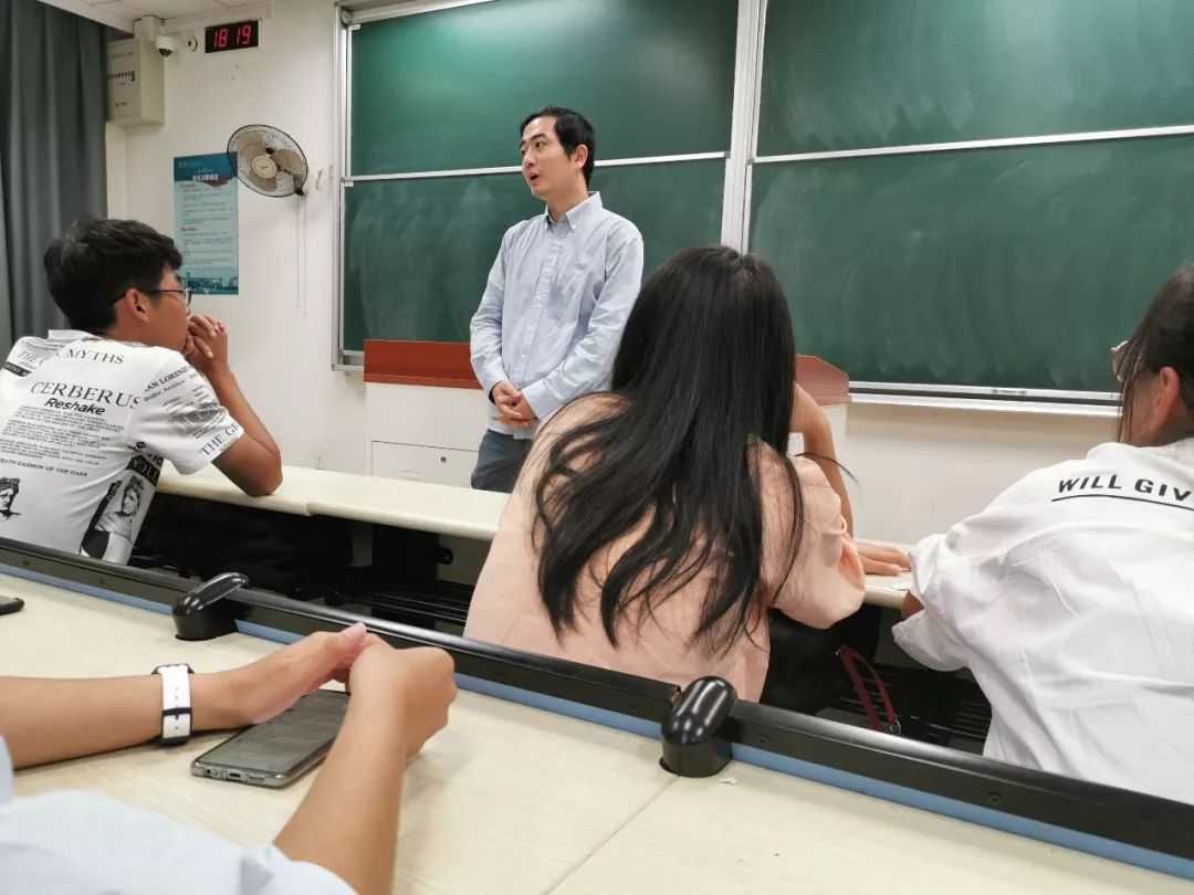 109班班主任安鲁陵老师、110班班主任陈肇麟老师、113班班主任余本嵩老师在班会上以自身经历为基点,与同学们分享了他们的生活感悟。安鲁陵老师着重讲述了学习经验,陈肇麟老师就其留学经历介绍了中西方文化的差异,余本嵩老师以三个故事串联,向同学们讲述了安全的重要性、学习的必要性、大学生活的多彩性。
