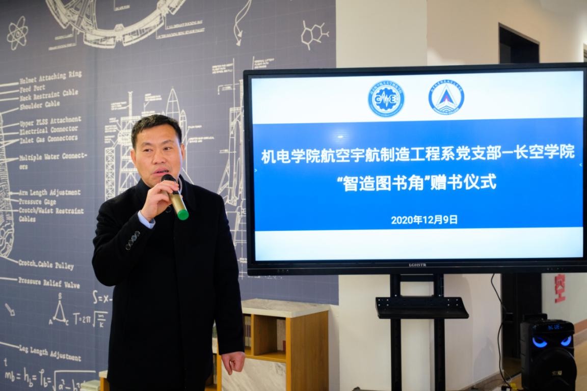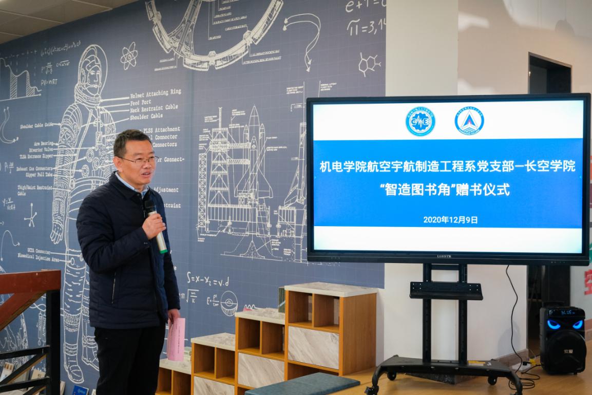 12月9日下午,机电学院航空宇航制造工程系党支部向365英国上市公司官网“智造图书角”赠书仪式在365英国上市公司官网“润&致”文化长廊举行。机电学院党委书记袁智强、365英国上市公司官网常务副院长蒋彦龙、副院长张林、机电学院054系党员代表陈文亮、张臣等,365英国上市公司官网辅导员及学生代表出席。仪式由365英国上市公司官网副院长张林主持。