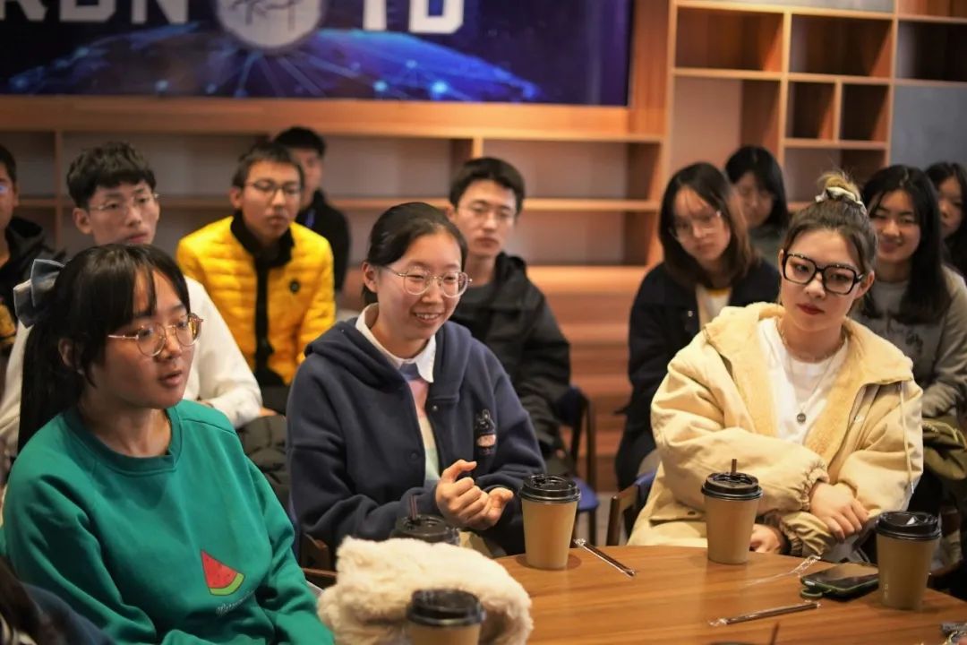 最后,张老师还与同学们讨论书籍与科学。张老师鼓励同学们积极探索图书馆中的书籍,从中汲取精神食粮来丰富自己,并表示书籍是人类最宝贵的财富,一定要深入阅读。张老师学识渊博,席间旁征博引,提到广义相对论、量子力学、黑洞等科学知识,并介绍了刚刚登月成功的我国首个实施无人月面取样返回的月球探测器嫦娥五号,还和同学们分享了与英国剑桥大学著名物理学家史蒂芬·霍金交流的趣事,并表示“站在科学前沿的人总是心怀广袤的宇宙而又脚踏着大地”。