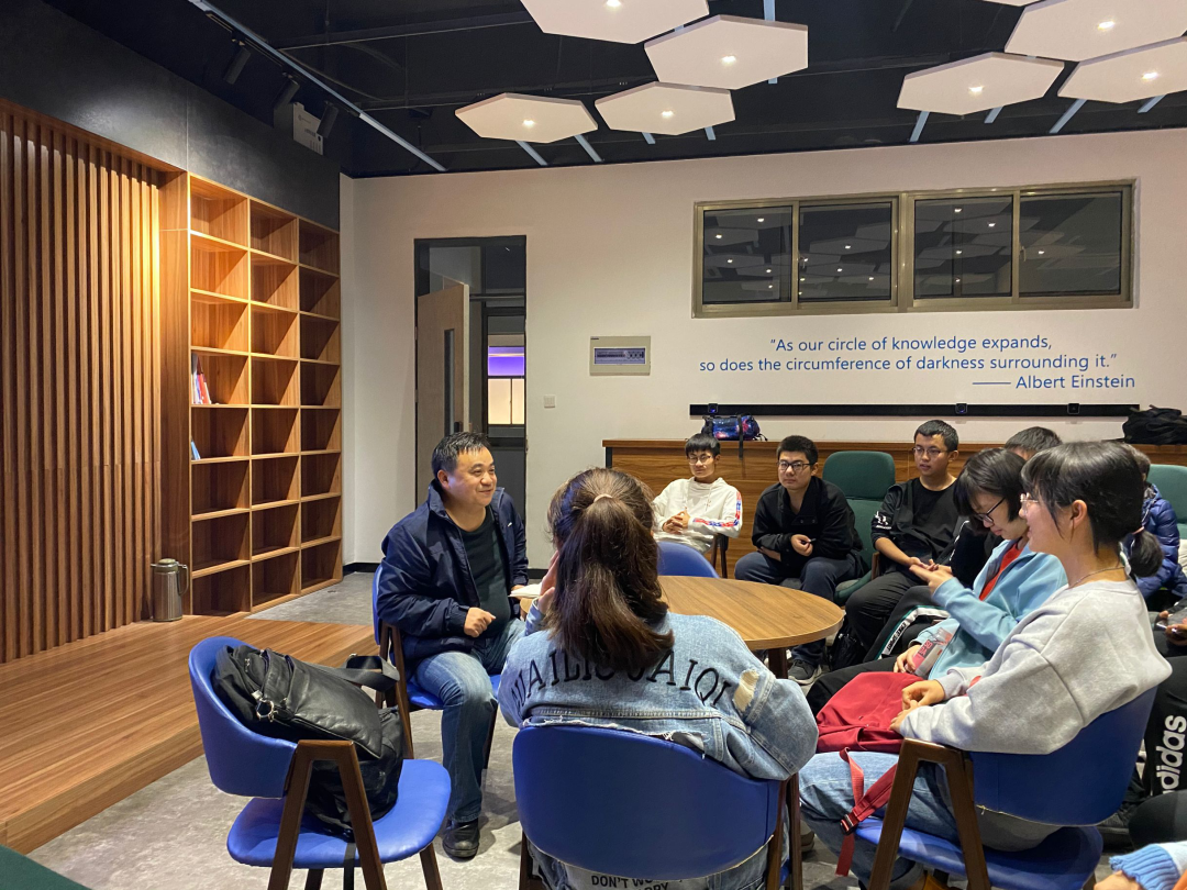 郝小忠老师和许可老师介绍了自己研究的专业方向,以此出发与同学讨论交流了新时代大学生应该具有的科学素养、眼见与卓识。同时,他们在了解同学们近期的学习情况后,告诫大家要走出舒适区,认真对待大学学习。