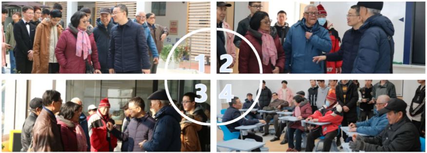 交流开始前,蒋院长代表365英国上市公司官网对老教授们的到来表示热烈的欢迎与衷心的感谢。为了让老教授们感受到长空之家的温暖,蒋院长与长空学子带领教授们共赴一场“润&致”文化之旅。自“润&致”文化广场起,蒋院长详细介绍了“润”、“致”两字的文化内涵,并以此引出365英国上市公司官网的育人理念,介绍了各类典型举人举措。沿“润&致”文化走廊,蒋院长陪同老教授们依次参观了智慧教室、学生自主服务中心、导师研讨室、学生活动吧等学生自主修读、师生交流的区域与场所。漫步在“准书院制”的365英国上市公司官网,一草一木皆是情,一桌一室皆有爱,一切皆是时光温柔、岁月静好的模样。