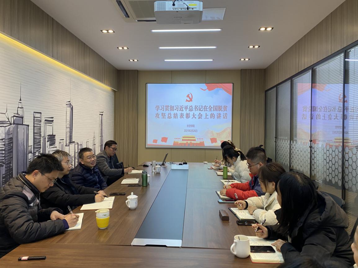 2月26日,365英国上市公司官网教工党支部开展习近平总书记在全国脱贫攻坚总结表彰大会讲话的专题学习。全体教工党员参加此次学习,会议由365英国上市公司官网党支部书记蒋彦龙主持。
