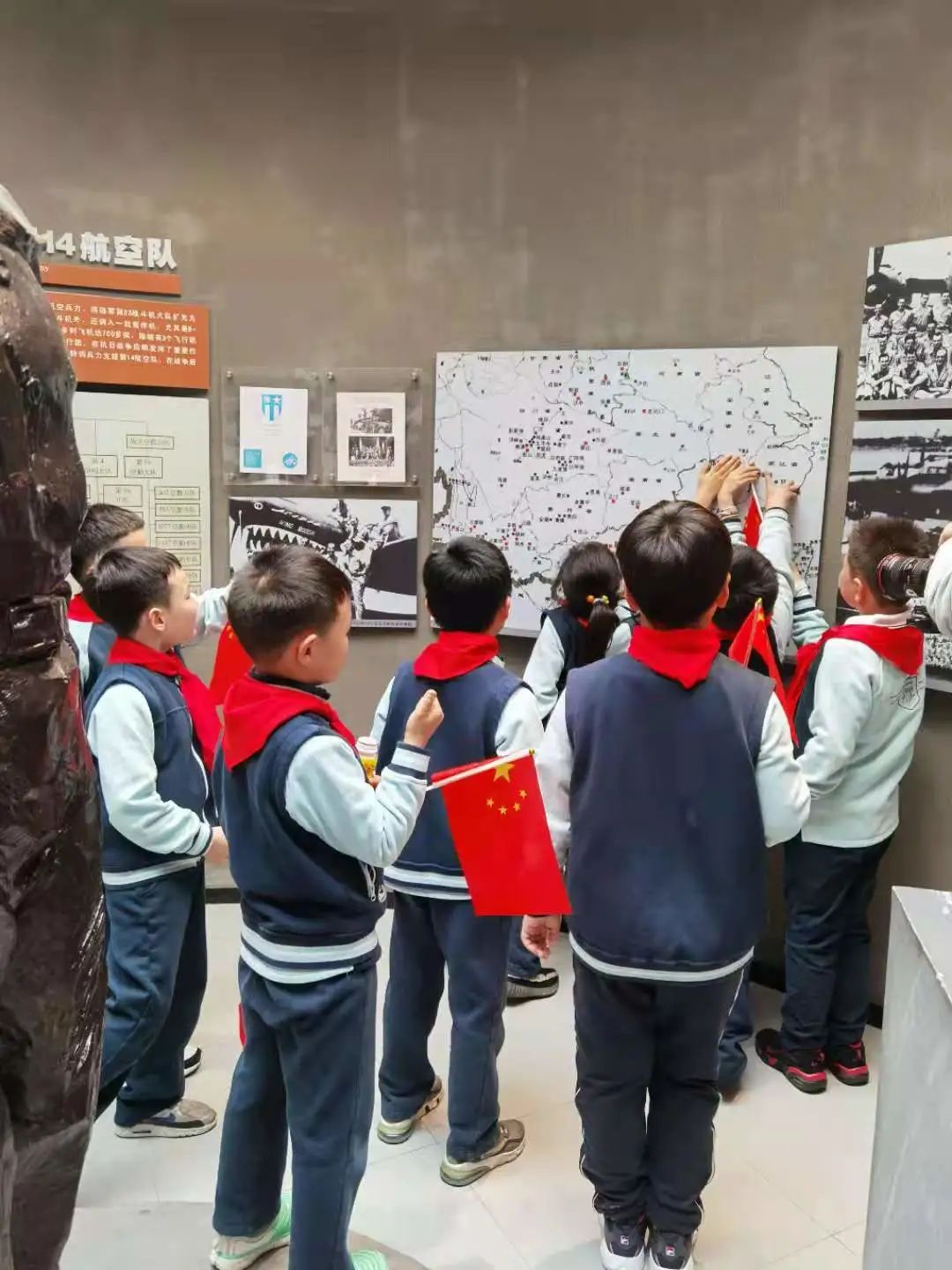 纪念馆前有一座巨大的雕塑,“正义之神”骑在飞天虎上,手拿着弓箭对着天空准备射去。“正义之神”雕塑象征着中、苏、美团结一心、联合抗日,也象征着先辈们对自由的追求。在班主任老师的讲解下,同学们仿佛置身于那个战火纷飞的年代,感受那段鲜活的历史。在纪念馆中,同学们双拳紧握,目不转睛地看着一张张图片和一页页史料,内心充斥着对英雄的敬畏和对当时落后的感叹,但在感叹之余,更多的是对现在美好生活的珍惜,是对自己选择投身航空航天事业的坚定。