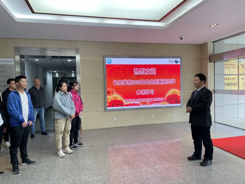 参观伊始,机械结构力学及控制国家重点实验室办公室主任朱孔军教授向同学们简要介绍了国家重点实验室的定位和我校机械结构力学及控制国家重点实验室的基本情况。朱孔军老师指出,国家重点实验室作为国家科技创新体系的重要组成部分,是国家组织高水平基础研究和应用基础研究、聚集和培养优秀科学家、开展高层次学术交流的重要基地,实验室实行“开放、流动、联合、竞争”的运行机制。我校机械结构力学及控制国家重点实验室依托我校力学、航空宇航科学与技术、机械工程等国家重点学科,主要面向国家航空航天战略需求,结合现代科技的发展趋势,以先进飞行器为主要载体,以力学与控制、信息和材料等学科的交叉发展为特色,以原创性研究和系统集成为核心,开展结构动力学与控制、机械结构强度、振动利用与精密驱动、微纳系统力学和智能材料与结构等方向的研究。