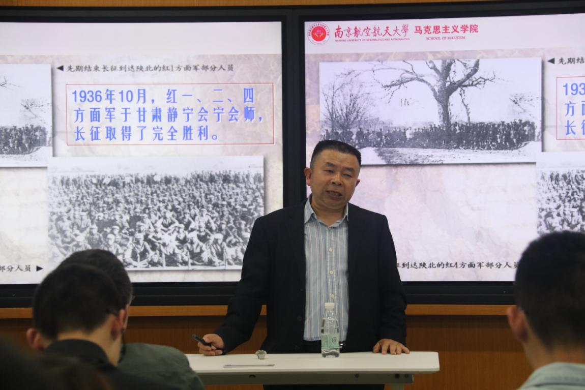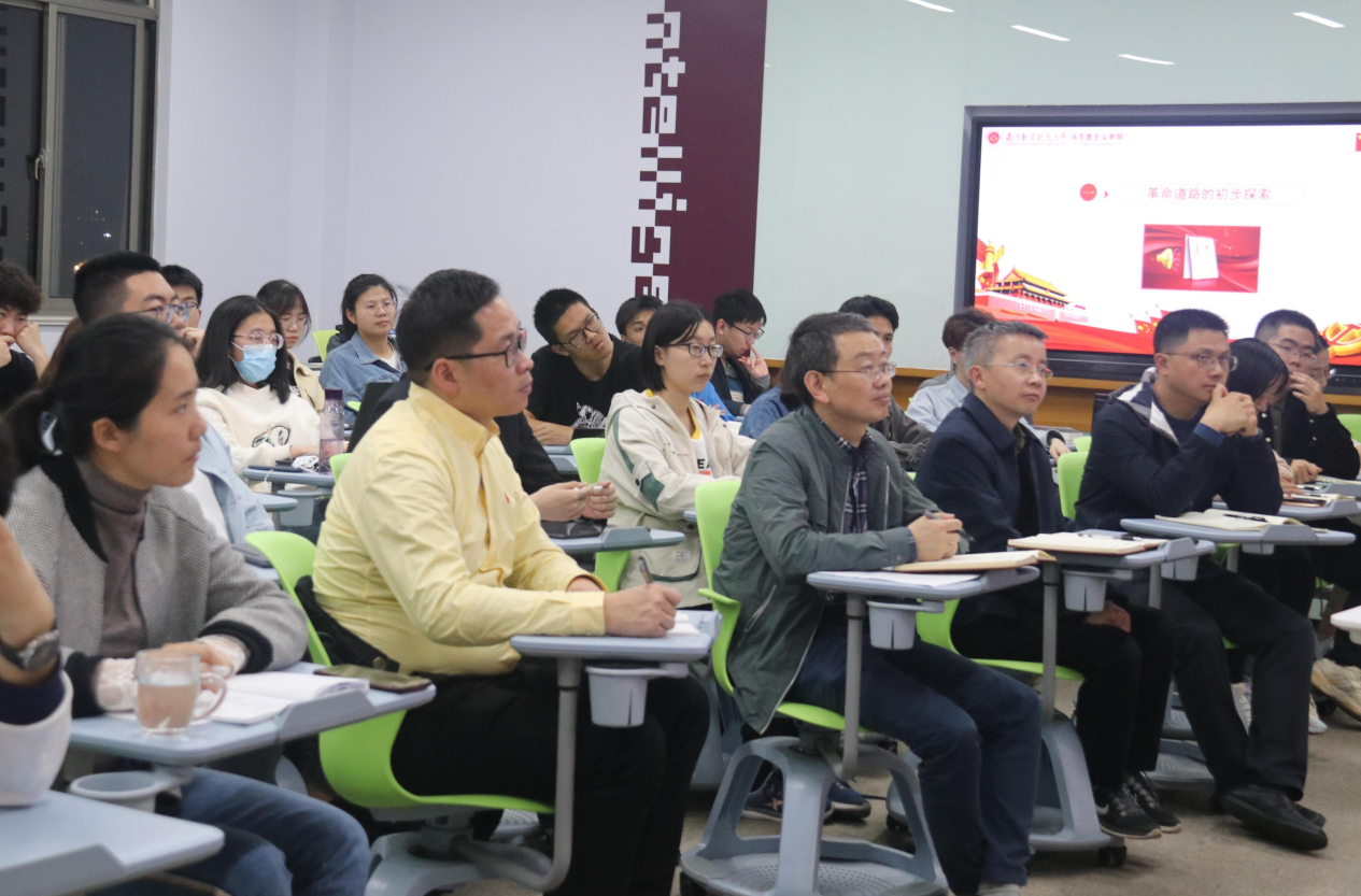 潘银良老师从“革命道路的初步探索”、“工农武装割据的实践”、“第五次反围剿的失败”、“红军长征的胜利完成”四个方面讲述了新民主主义革命时期中国共产党辉煌而壮丽的血火战歌,深度解读了长征精神的内在意蕴。他鼓励在场师生要悉心体悟长征精神的内涵,坚定理想信念,牢记初心使命,紧密团结人民群众。在场学生深受感染,表示对新民民主义革命时期的历史有了更深刻的认识,受益匪浅。
