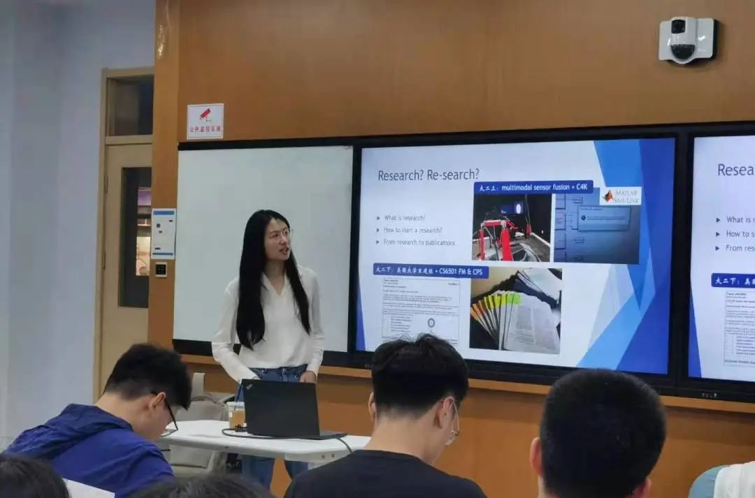 接下来,学姐用她的亲身经历告诉大家该如何做科研。陈圣卉学姐的科研之路是从大二开始的,也曾经历过迷茫,也曾思索过是否要选择科研这一条路、该如何做科研。从参与multimodal sensor fusion研究到美国大学生数学建模大赛,再到workshop、IROS一作,再到与博士合作科研、完成毕业论文……科研于她而言,意味着挑战与收获同行,完美与微瑕并存。