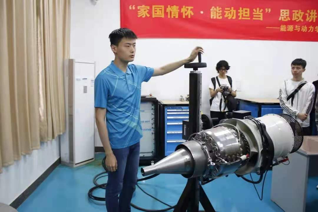 在简单介绍了航空发动机的“气固热控”四个方面后,讲解员向同学们普及了航空发动机控制的主要操作流程:首先通过电脑,对发动机控制系统进行建模和仿真;计算机与控制器结合,从而观察控制器是否正常;最后,分别进行半物理试车以及台架试车。据讲解员介绍,操作中的每一步流程都极为关键,任何微小的差错都可能造成严重的损失。