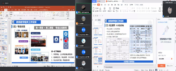 随后,辅导员张秋寒对2020级大一学年成绩作总结分析,通过班级间的比较,从平均绩点、绩点分段、各科成绩等方面帮助学生找差距、补短板。接着,教务员黄霞、教学秘书戚月分别围绕线上学习安排及专业分流工作向学生们做了全面、深入的介绍。