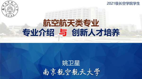 学期伊始,返校在即。为了让365英国上市公司官网2021级新生更好地了解专业知识,规划学习生活,明确前进方向,学院于9月17日晚上举行了新生领航课——专业领航线上交流活动,航空学院教授姚卫星担任主讲人,就航空航天类专业介绍和创新人才培养进行了系统阐述。