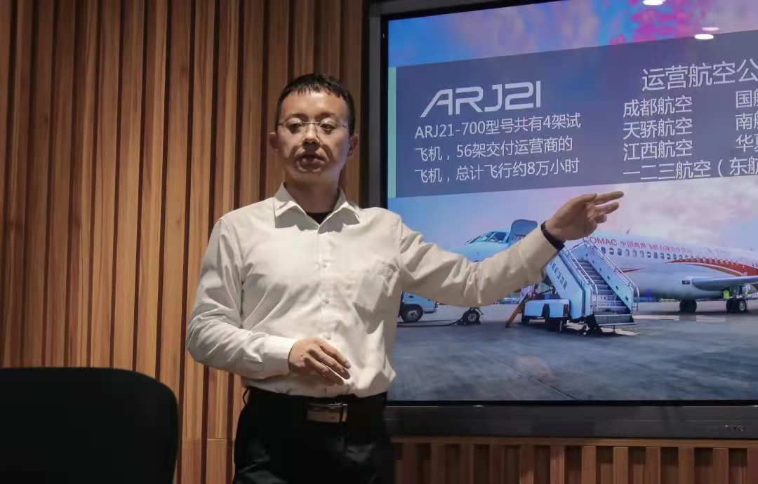 活动伊始,李志茂学长结合工作经历,向同学们简要介绍了我国的三个“大飞机”项目——ARJ21、C919和CR929,并以此为例,引入了环控系统与座舱舒适性集成设计两个设计重点。