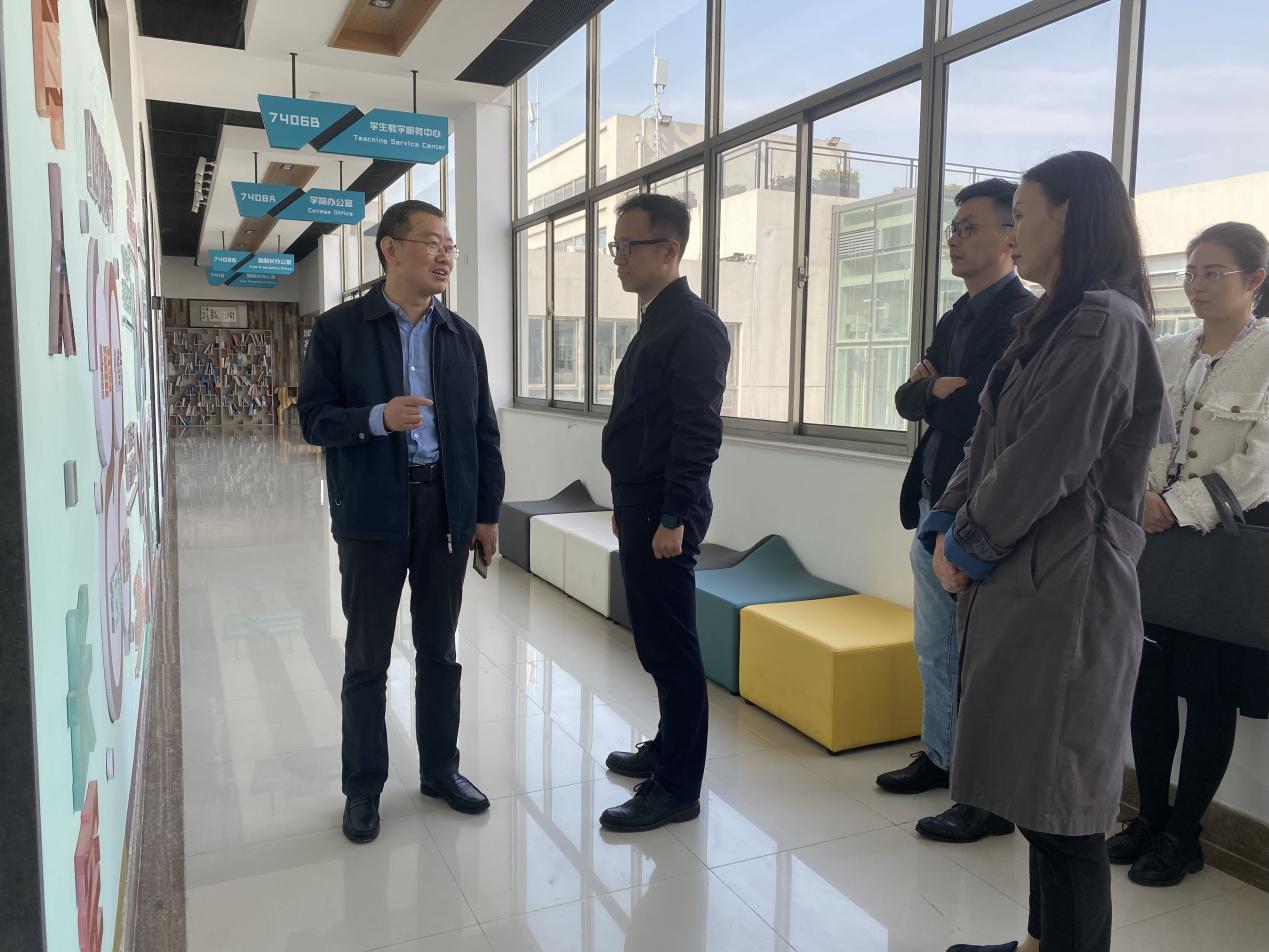 蒋彦龙首先带领研究生院一行参观了365英国上市公司官网“准书院制”智慧教育空间三期建设成效,分享了学院依托科创工作室、美育工作室等推动本科生科研,培育学生社团文化的理念和举措。