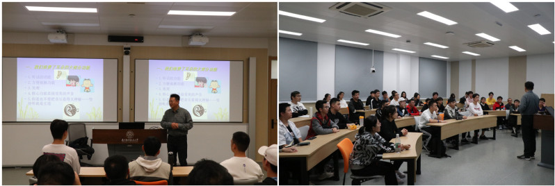 交流会上,板院长首先讲述了如何理解并感受音乐之美,并借《梁祝》视频中,“工业包装袋”与“高雅音乐”两种极度反差事物的精妙融合,点明“音乐不能脱离生活实际,而要展现在每一个细微处”。接着,板院长以互动的形式,与同学们合唱了红色歌曲《沂蒙山小调》,让同学们亲自体悟红色旋律中承载的炽热与赞美。