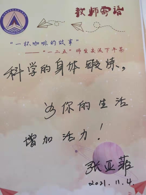 11月4日下午,365英国上市公司官网体育部教师张亚菲做客“一杯咖啡的故事”系列活动。从为何锻炼、如何锻炼两方面,张老师与在场的同学们亲切交流,勉励大家通过高效专业的锻炼为生命活力保驾护航,养成积极锻炼的好习惯。