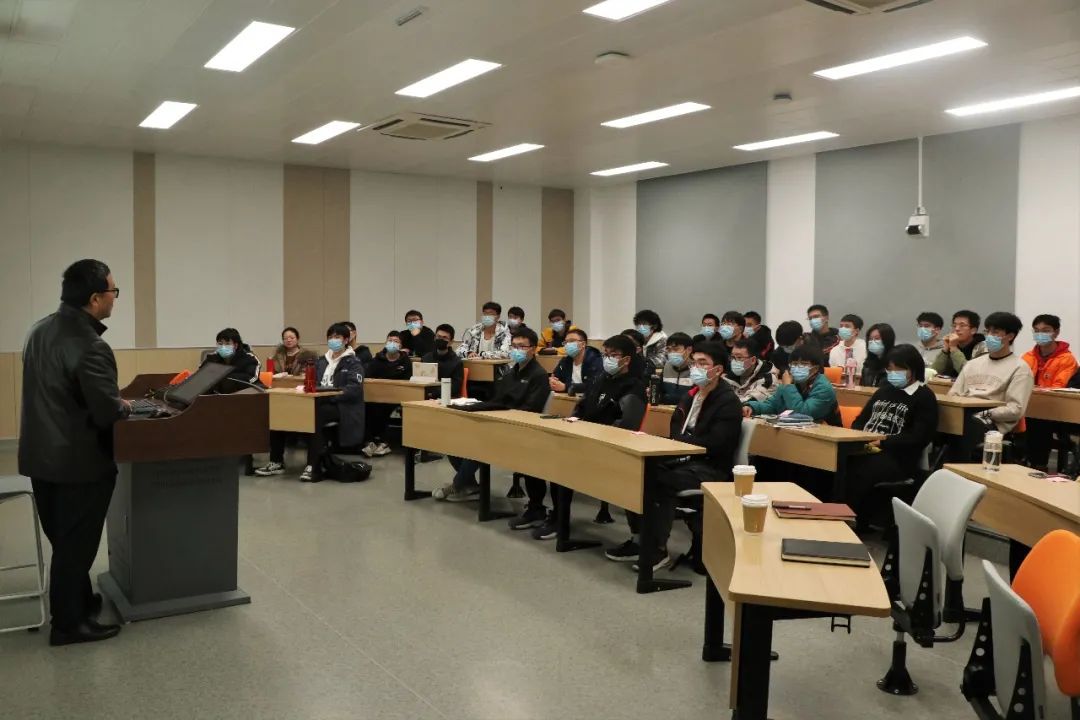 最后,博士研究生黄帅与同学们分享了自己的科创心得。黄学长提到,他的科创之旅也仅仅起源于一个闲暇之余的想法,在经历种种考验后,最终开花结果,所以同学们可以大胆参与科创竞赛,不必畏惧失败。