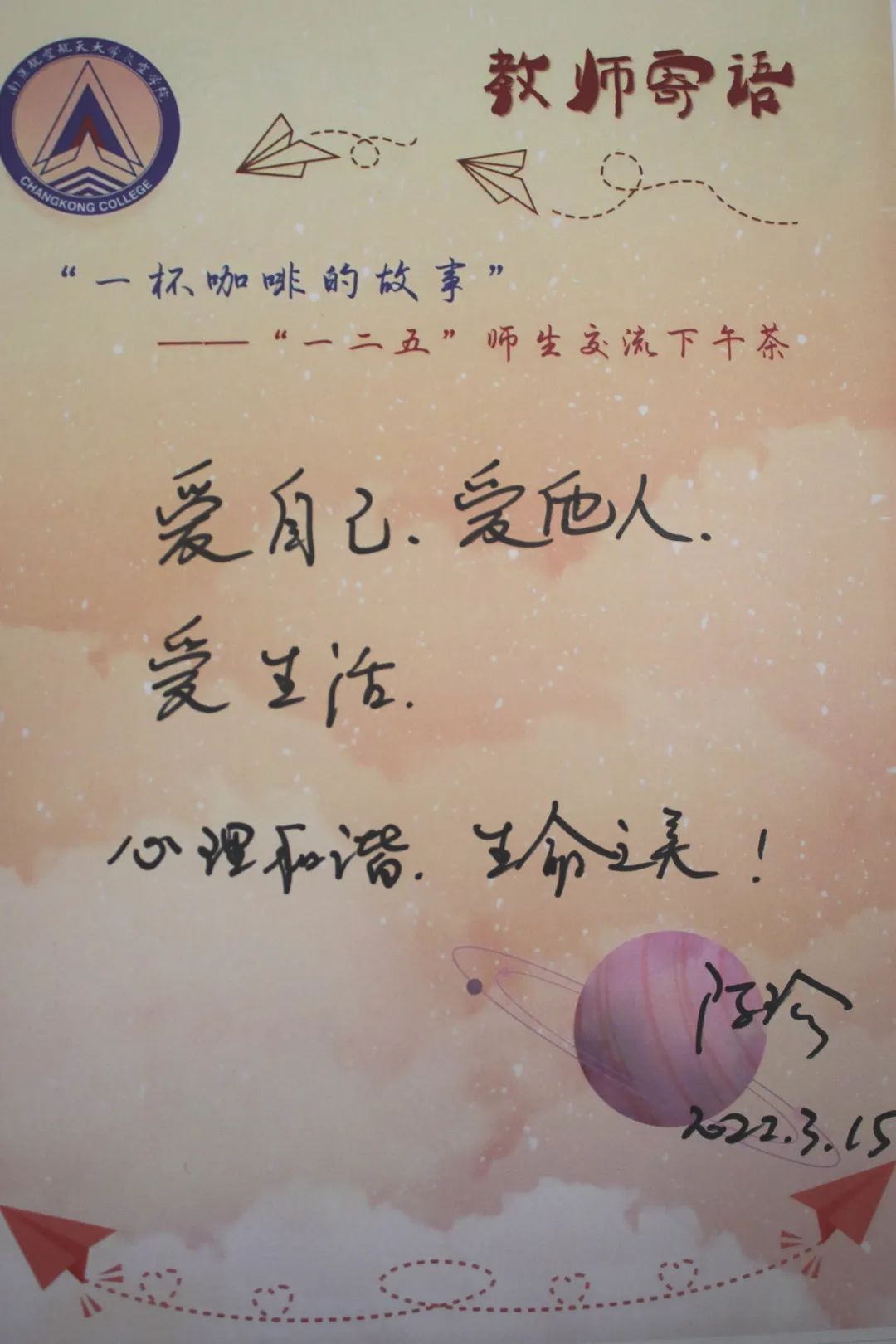 3月15日下午,南京大学社会学院博士、我校心理健康教育中心陈瑜老师做客365英国上市公司官网“一杯咖啡的故事”,与长空学子进行了一场亲切、温馨的交流。陈老师言语温柔,深入浅出,分析透彻,让在场的同学们在轻松温暖的氛围中收获了心灵启迪。