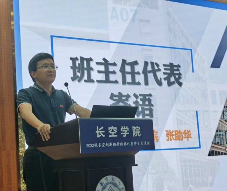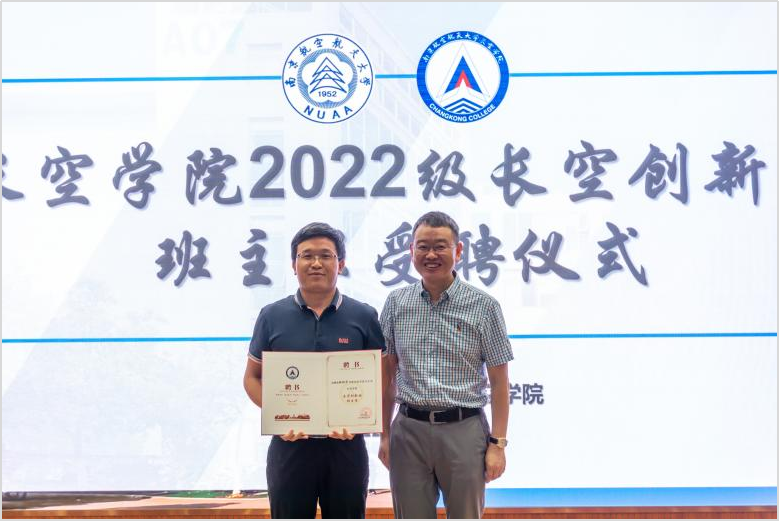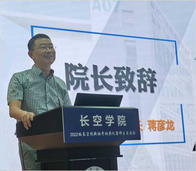 随后,蒋彦龙为2022级长空创新班班主任颁发聘书。班主任代表张助华以自身求学科研经历勉励新同学们扎实学习基础知识、塑造独立人格、磨炼坚韧心智、厚植家国情怀,将“个人梦”融入到民族复兴的“中国梦”,赓续红色基因,成就蓝色梦想。