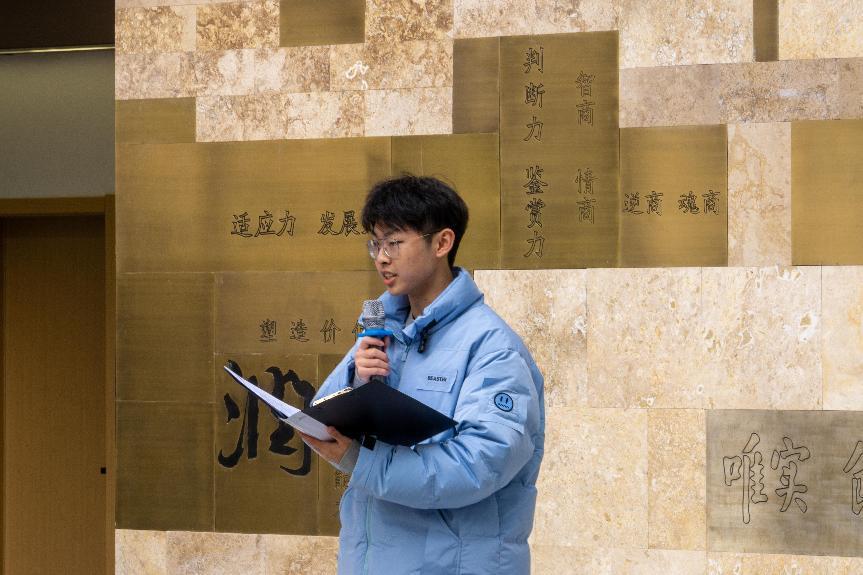 365英国上市公司官网首届航空航天类学生代表、年度校长特别嘉奖获得者付越分享了参与科创的收获与感悟,并鼓励学弟学妹们利用学院丰富的科创资源与高水平的科创平台,勇于尝试各种各样的创新实践活动,在科创中发掘兴趣,再将兴趣融入科创、爱上科创。
