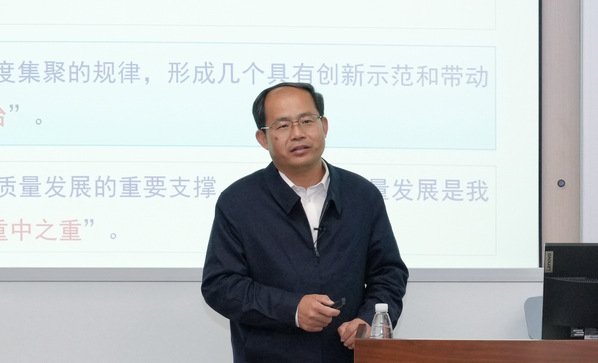 他从“我国在制造业方面到底强还不强?”“与制造业发达国家相比水平如何?”“为什么要坚定不移建设制造强国?”三个问题引入,从规模发展、质量效益、结构优化、持续发展等四个维度对比了中国与制造业发达国家的制造强国发展指数,启发同学们对我国制造强国建设的深入思考。他指出,我国制造强国发展进程加速推进,正在由制造大国向制造强国迈进,需要持续加强有组织的人才培养、有组织的科研创新和有组织的高端产业发展,促进数字技术、智能技术、工业互联网与实体经济深度融合,提升创新能力、制造能力与智能化水平,扎实推进新型工业化,推动制造业高端化、智能化、绿色化发展,更好赋能中国式现代化建设。