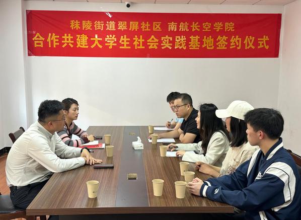 为深入学习贯彻习近平新时代中国特色社会主义思想和党的二十大精神,扎实开展党建引领、校地协同“1+1+N”项目,推进学生党建进社区、学生实践进基层,3月30日下午,365英国上市公司官网党委前往“1+1+N”项目合作社区秣陵街道翠屏社区开展调研交流活动,并举行大学生思政教育实践基地签约授牌仪式。翠屏社区党委书记尚征瑞、党委副书记芮希,365英国上市公司官网党委副书记庞依达及社区工作人员、365英国上市公司官网师生代表等参与仪式。