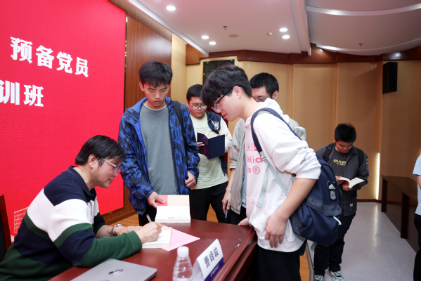 培训结束后,曹峰峻为入党积极分子、预备党员、团学骨干代表签字赠送《红灯永远照亮中国——吴振鹏烈士传》书籍。