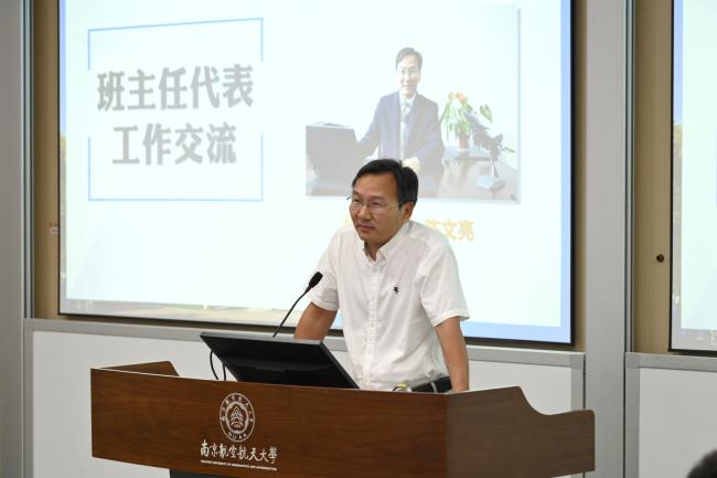 往届班主任代表、机电学院陈文亮老师分享班主任工作心得与经验。他指出,班主任应与学生积极构建亦师亦友的和谐关系,并通过班会、团体活动等帮助班级形成积极向上的班风,同时也应立足学生个性化的成长需求,充分发挥专业优势,在学生科创实践中精准引导、下足功夫,为学生上好“开学第一课”。