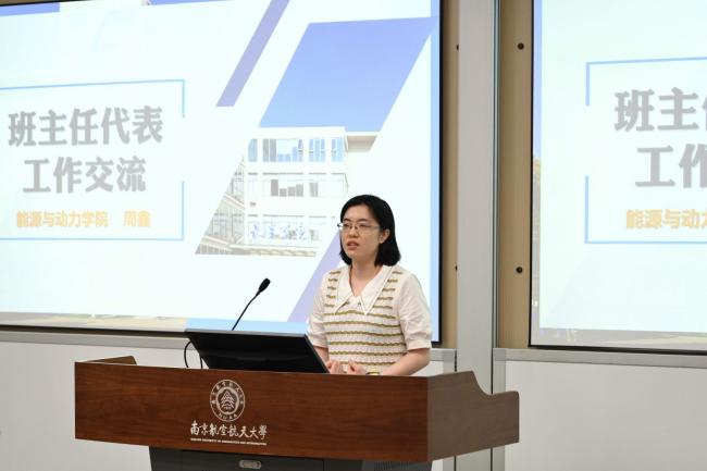 能源与动力学院周鑫老师作为新任青年班主任代表发言。她表示将应以“尊重、鼓励、成长”为支点做好班主任工作,挖掘学生潜力,成为学生健康生活、专业学习、科研实践的知心人、热心人和引路人,帮助学生走好大学生活的每一步。