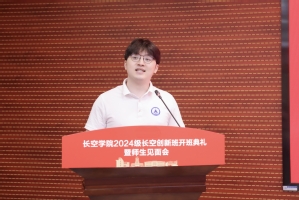 庞依达、彭聪向2024级长空创新班授旗,旗帜飘扬象征着责任与力量,标志着2024级长空创新班班级建设踏上新征程。