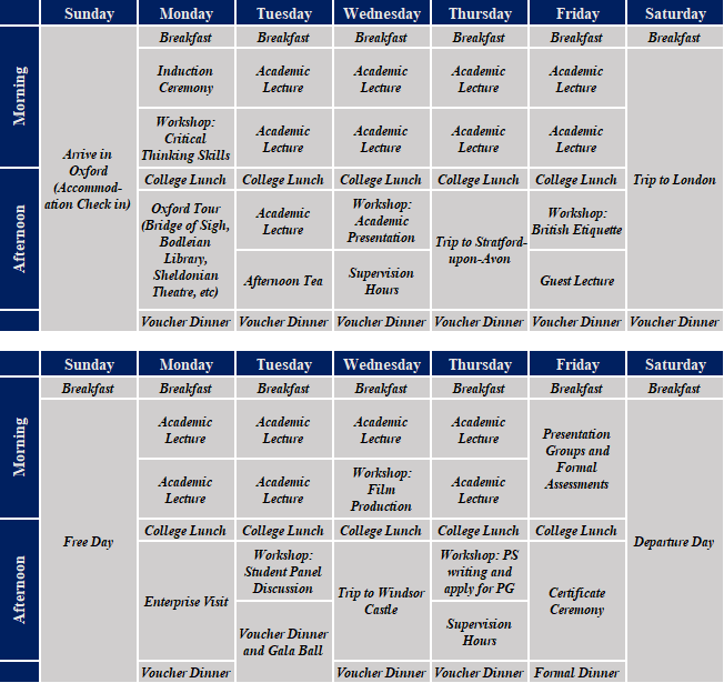 学术实践工作坊旨在激发学生的自我驱动力,建立锻炼批判性思维的同时,注重学生个人素养的全面培养,提高其研究技能,明晰学术和职业规划,对未来的学术研究和职业生涯构建了坚实的基础。同时还将提供与牛津大学成功申请者互动,拓展全球人际关系的机会,内容包括:
